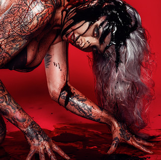 Here is a peek at the photos we created, turned out amazing with the red backdrop and pouring blood.